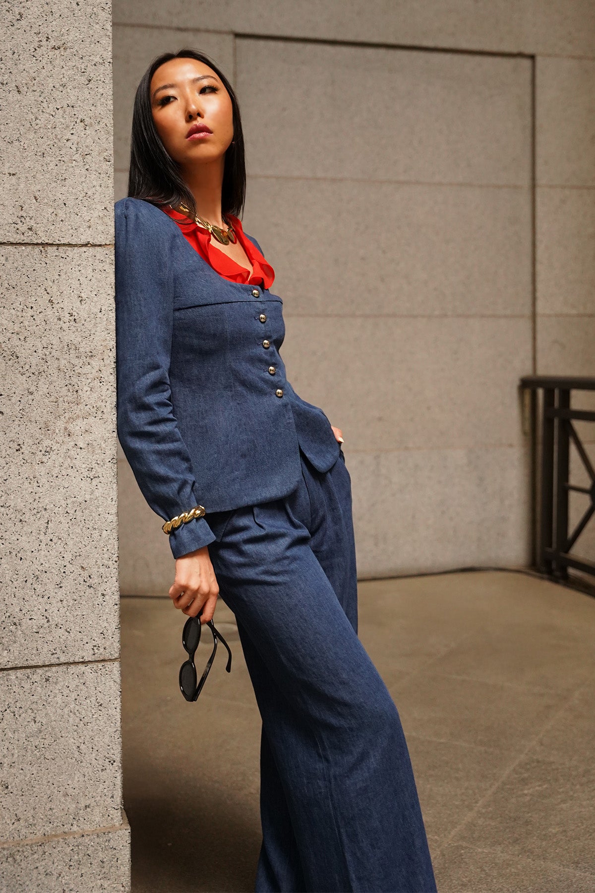 Redefining power suiting with our first U.S.-grown Climate Beneficial Wool in a softy structure silhouette.